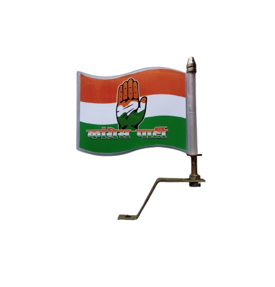 Congress Plastic Radium Car Flag Steel Rod & Bracket (Combo Pack)