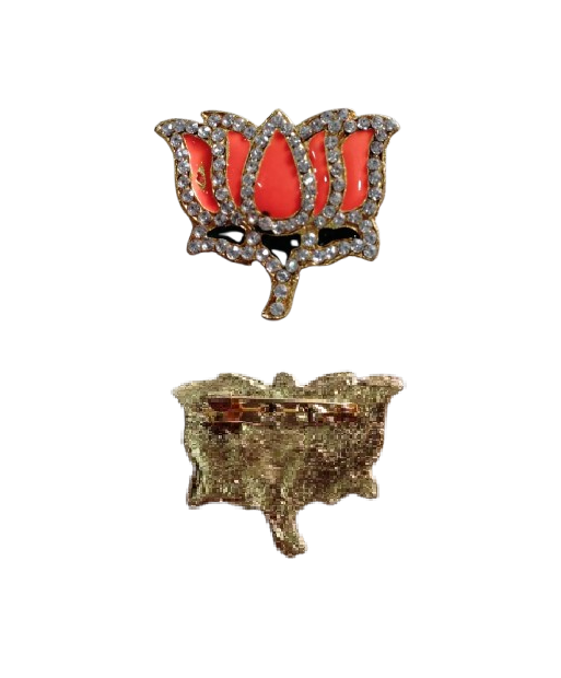 BJP Symbol Metal Stone Decorated Brooch